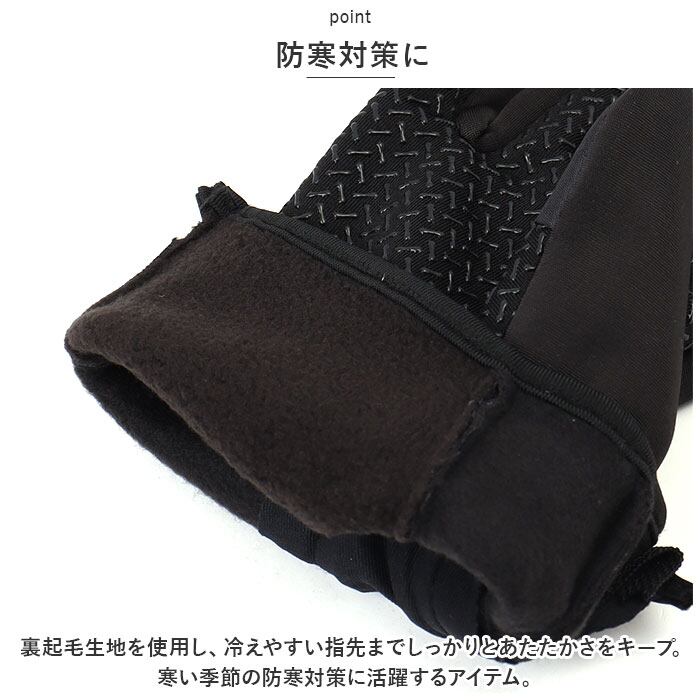 ・裏起毛生地を使用し、冷えやすい指先までしっかりとあたたかさをキープ。寒い季節の防寒対策に活躍するアイテム。