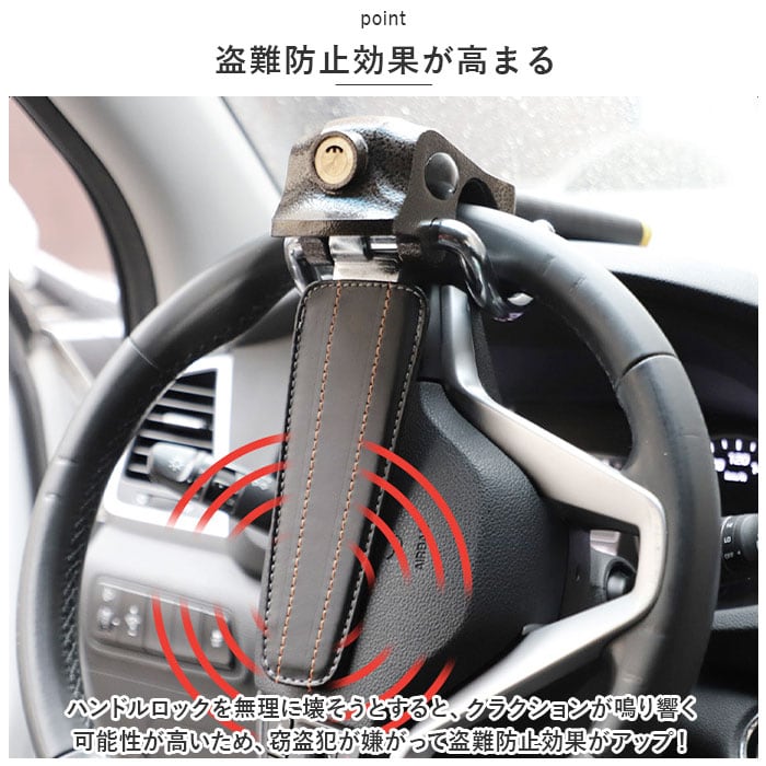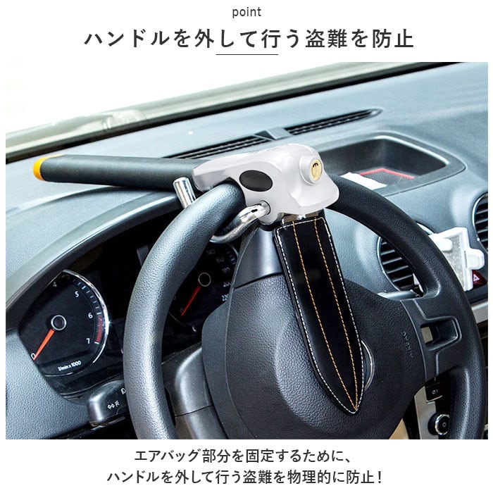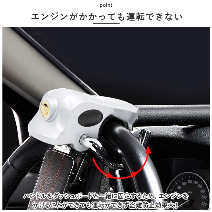 ・ハンドルをダッシュボードと一緒に固定するため、エンジンをかけることができても運転ができず盗難防止効果大!
