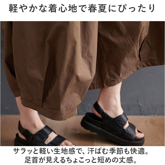 ・サラッと軽い生地感で、汗ばむ季節も快適。足首が見えるちょこっと短めの丈感。