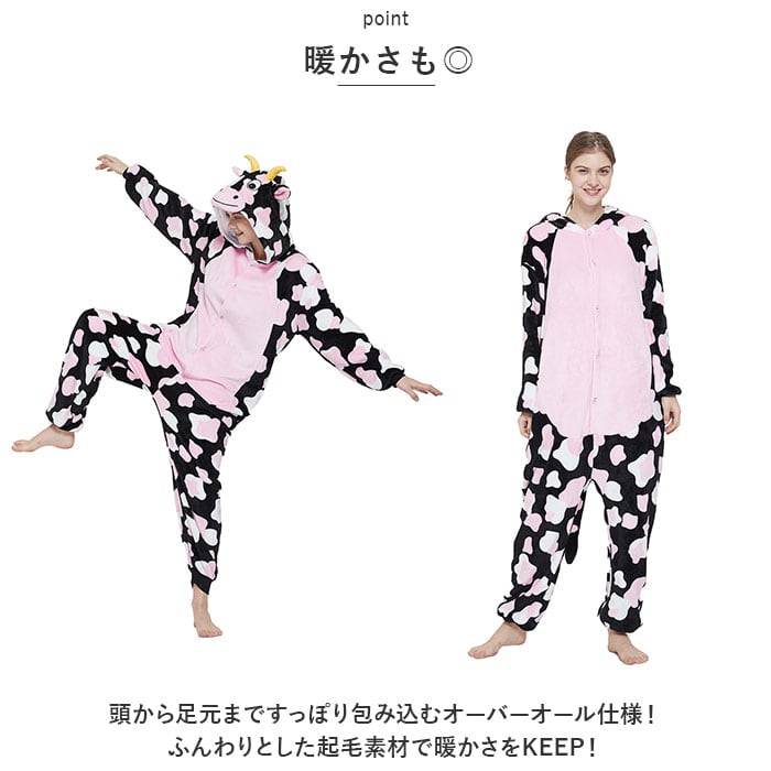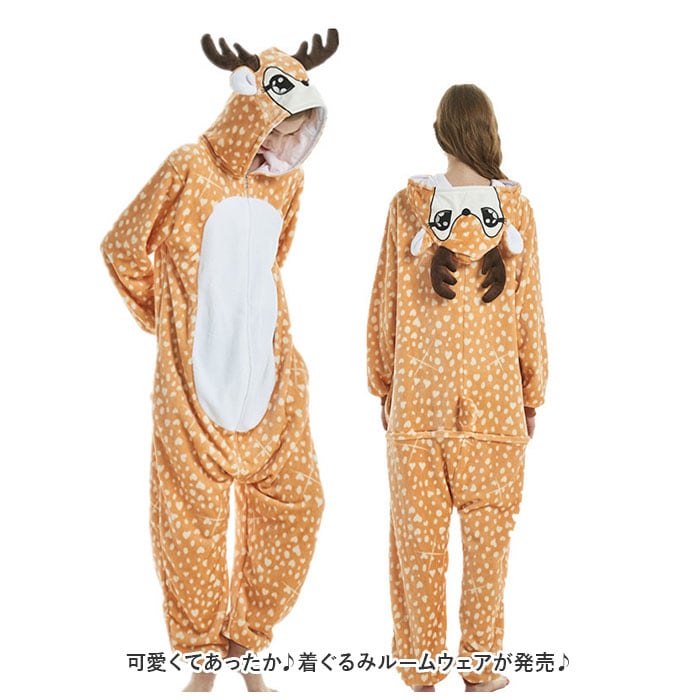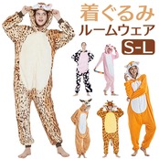 ・アニマルモチーフにフェイスデザインのフードが付いた可愛いルームウェア!ルームウェアの他に、パーティーやハロウィンの仮装でも活躍☆