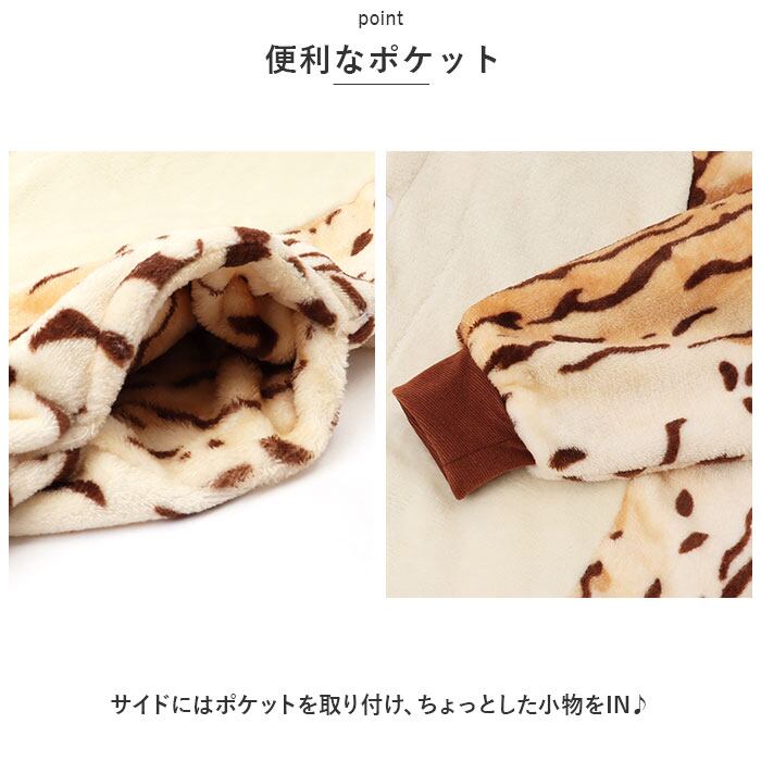 ・頭から足元まですっぽり包み込むオーバーオール仕様!ふんわりとした起毛素材で暖かさをKEEP!