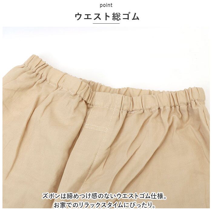 ・ズボンは締めつけ感のないウエストゴム仕様。