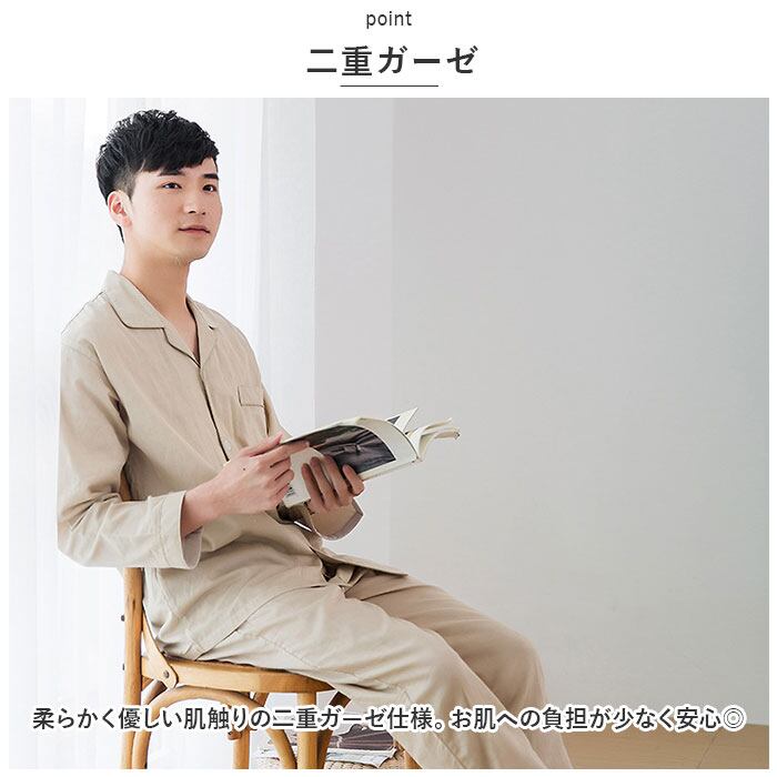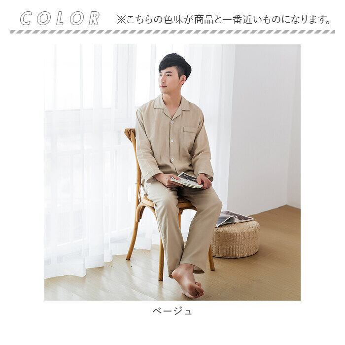 二重ガーゼ ルームウェア 上下セット メンズ pk027