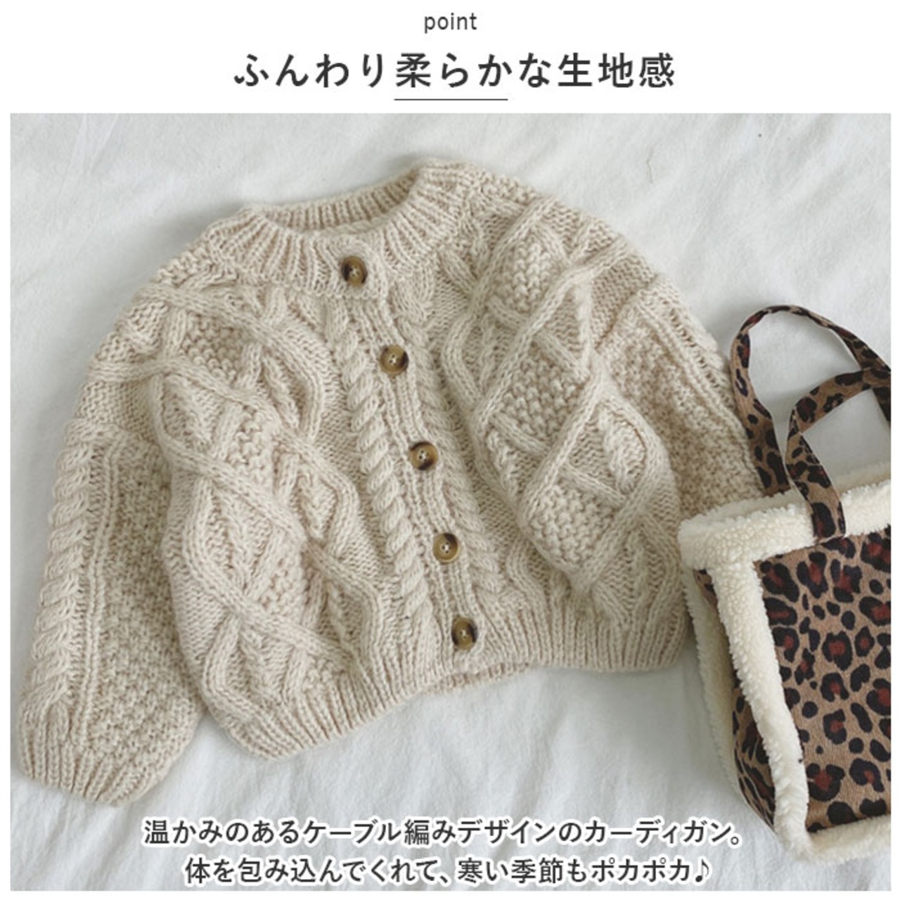 ・温かみのあるケーブル編みデザインのカーディガン。体を包み込んでくれて、寒い季節もポカポカ♪