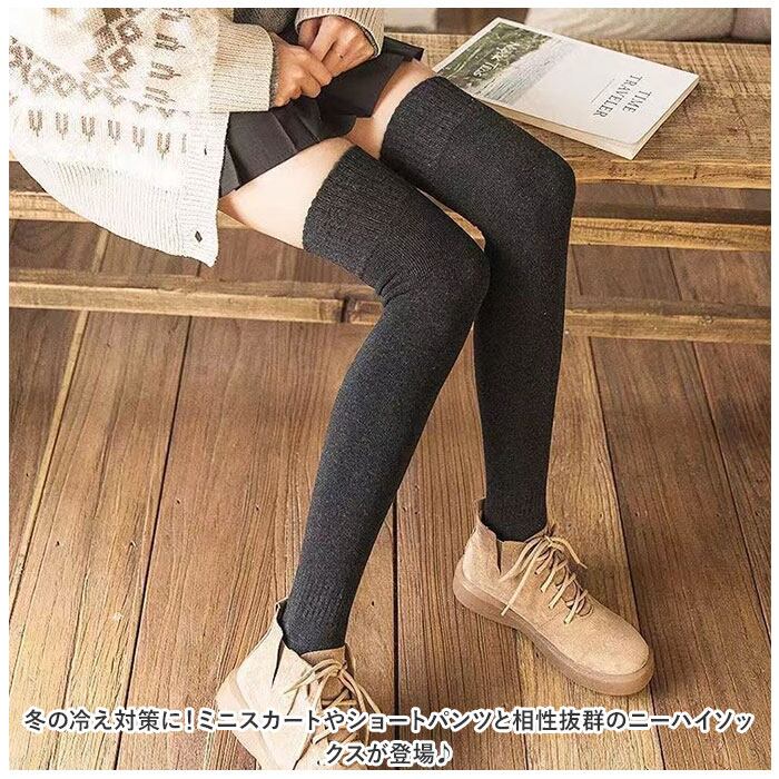 ・ミニスカートやショートパンツと相性抜群の膝上丈のソックス。防寒対策だけでなく美脚効果も◎