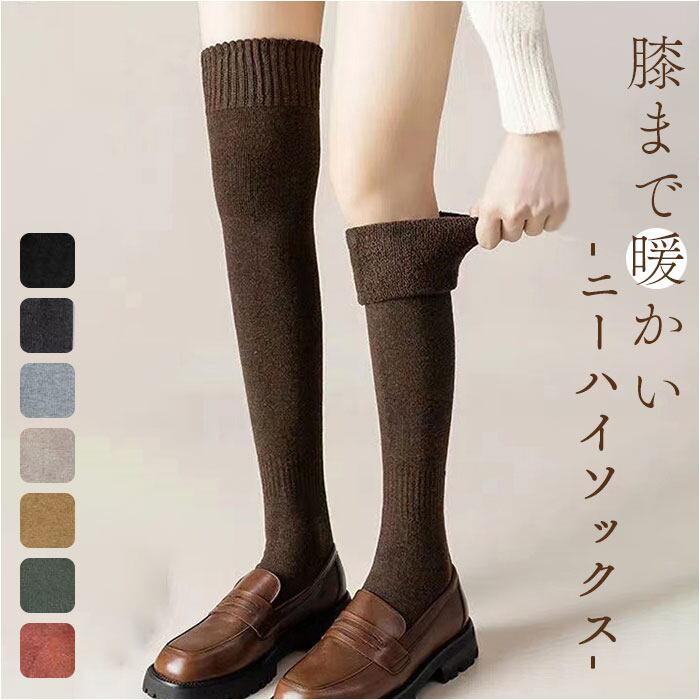 ニーハイソックス レディース 通販 ハイソックス 靴下 ソックス くつ下 ロングソックス ルームソックス 膝上 暖かい 保温 冷え対策 平編み 無地 大人 春 秋