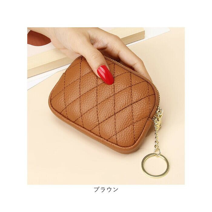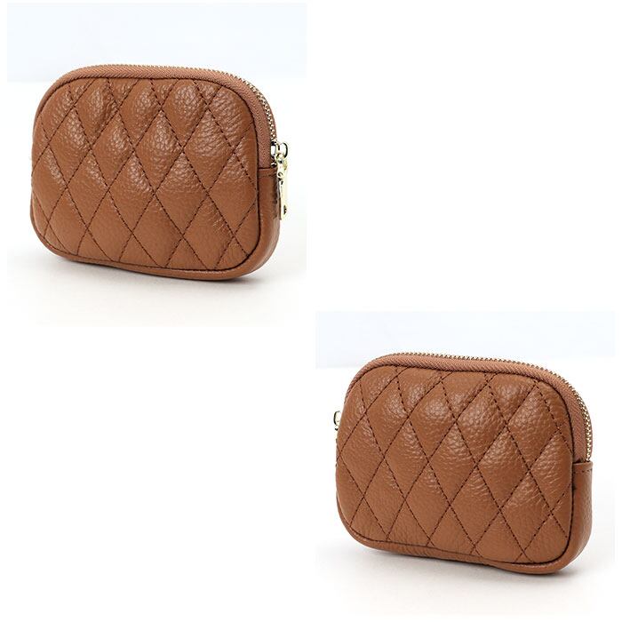 ・コロンと丸みのあるカタチが手のひらに優しくフィット!柔らかな牛革のボディにダイヤモンド型のキルティングステッチを施した、ちょっぴりリッチで女子力高めのデザイン。