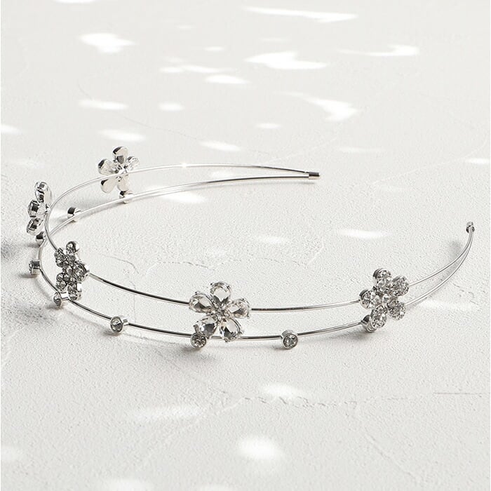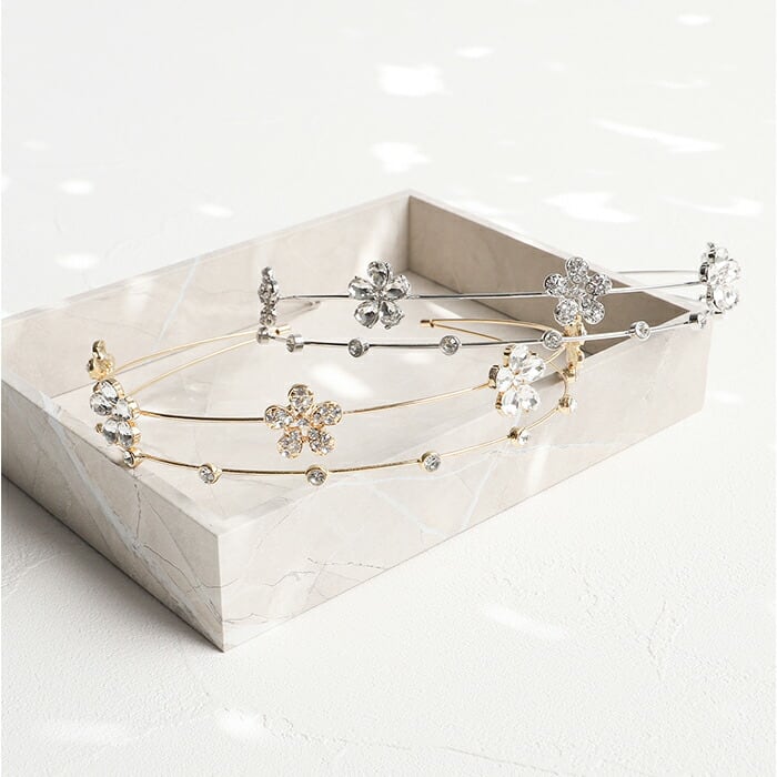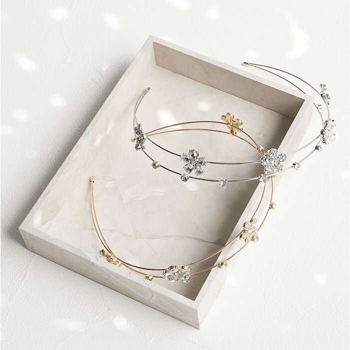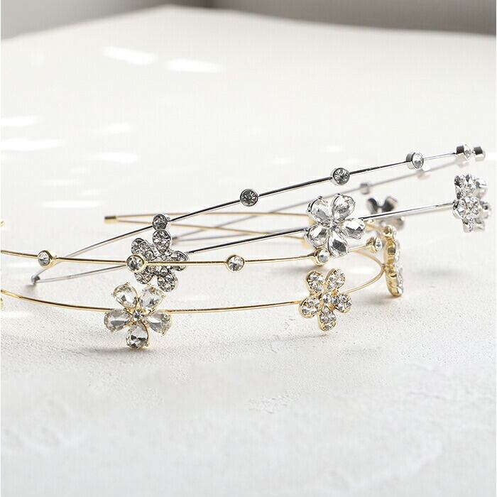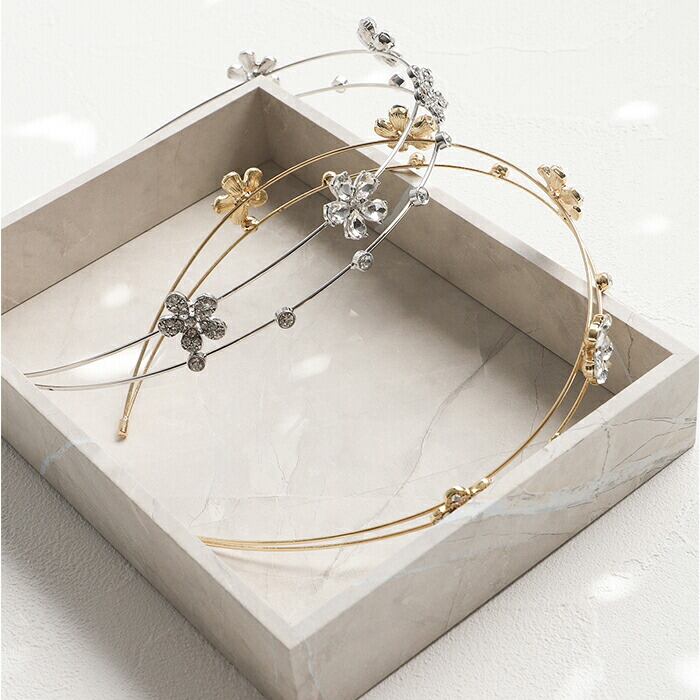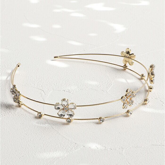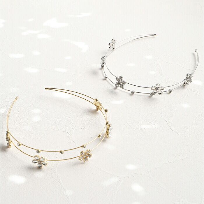 ・キラッと輝くビジューのお花モチーフが可愛い、2連カチューシャ♪上品なデザインが魅力。