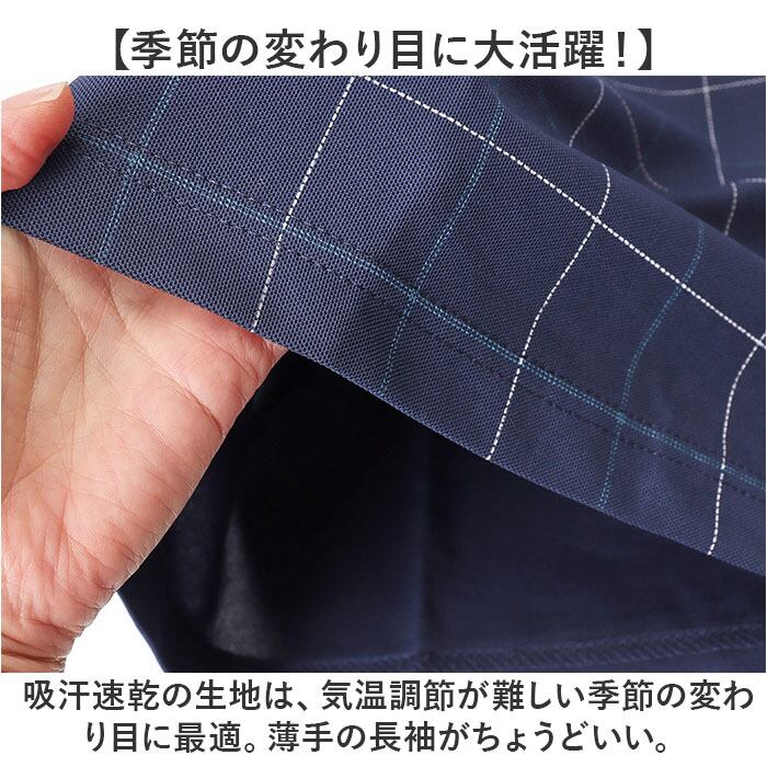 ・吸汗速乾の生地は、気温調節が難しい季節の変わり目に最適。薄手の長袖がちょうどいい。