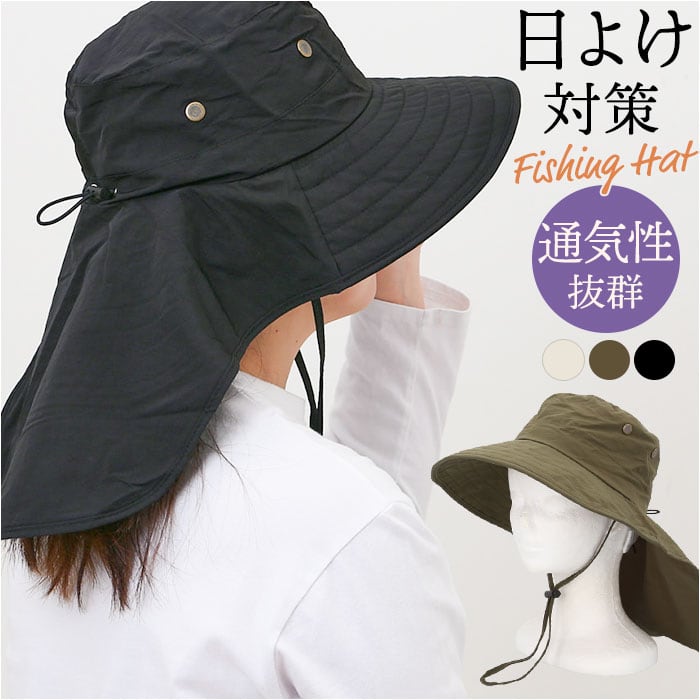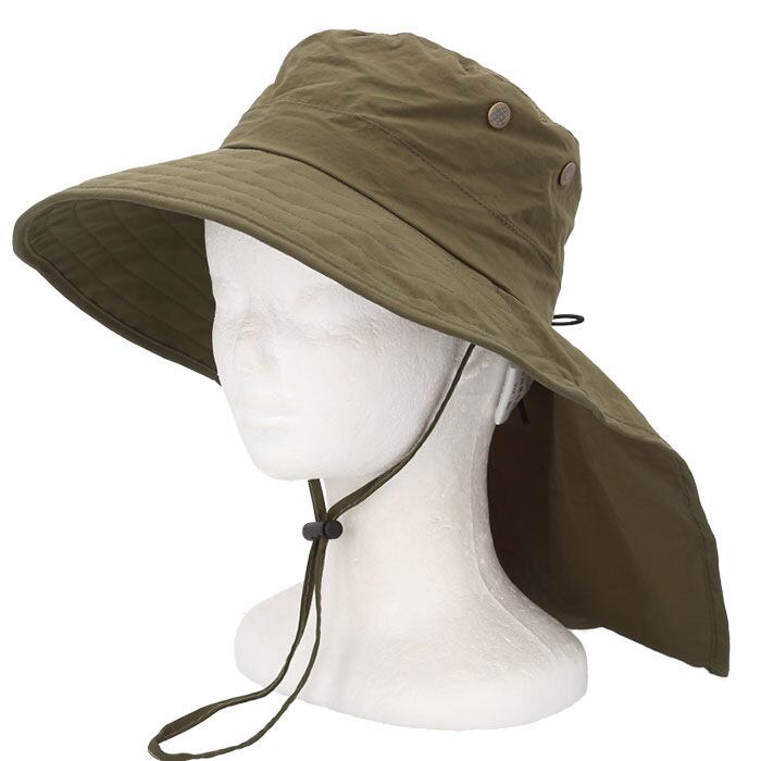 ハット 帽子 レディース 通販 サファリハット たれ付き あご紐付き シンプル 無地 ナイロン 通勤 通学 自転車 日よけ 日除け アウトドア 釣り 運動会 スポーツ観戦 あご紐 あごひも 顎ひも あご 紐 フィッシングハット 401479 レディース帽子