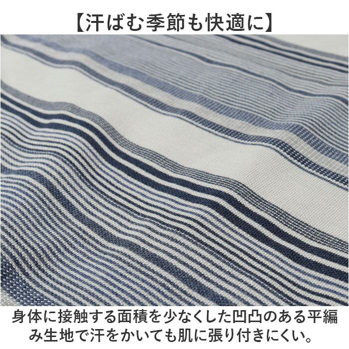 ・身体に接触する面積を少なくした凹凸のある平編み生地で汗をかいても肌に張り付きにくい。