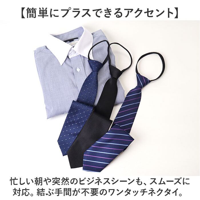 ・忙しい朝や突然のビジネスシーンも、スムーズに対応。結ぶ手間が不要のワンタッチネクタイ。