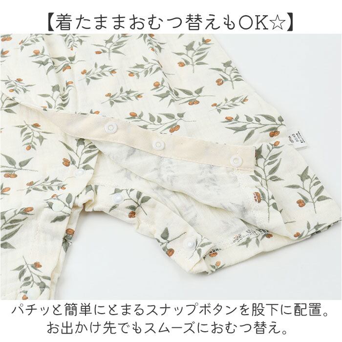 ・パチッと簡単にとまるスナップボタンを股下に配置。お出かけ先でもスムーズにおむつ替え。