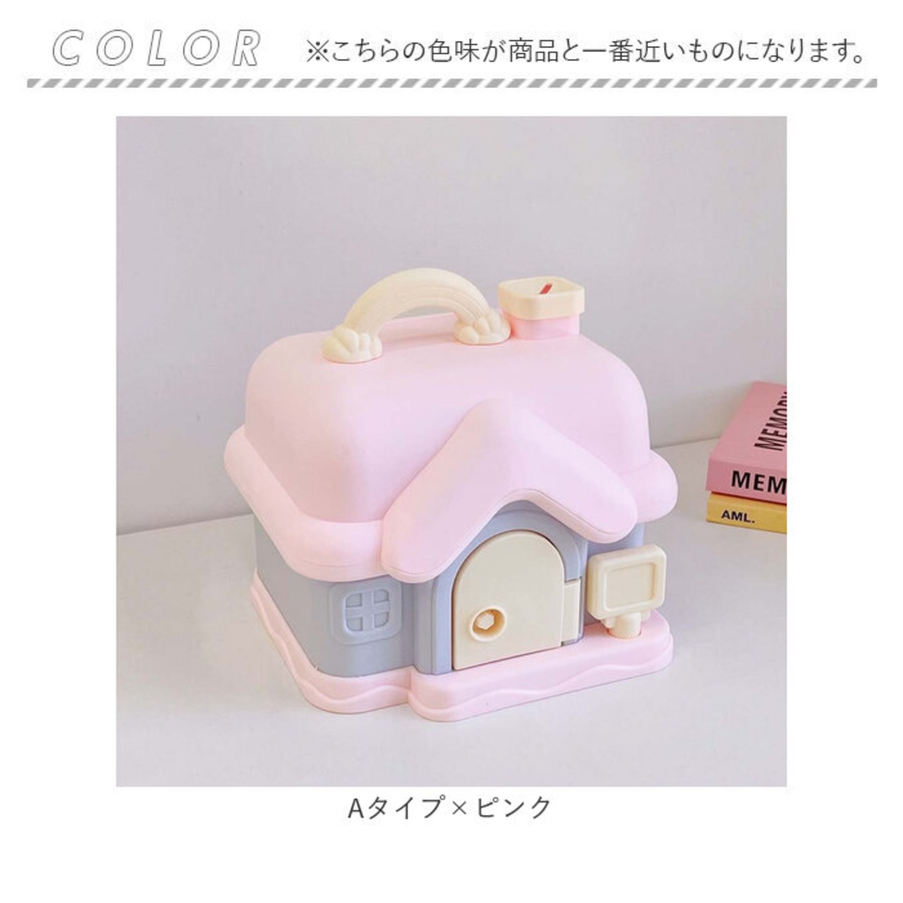 ・貯金箱に見えない、可愛いパステルカラーと大きめサイズがポイント。そのまま置くだけでOK♪