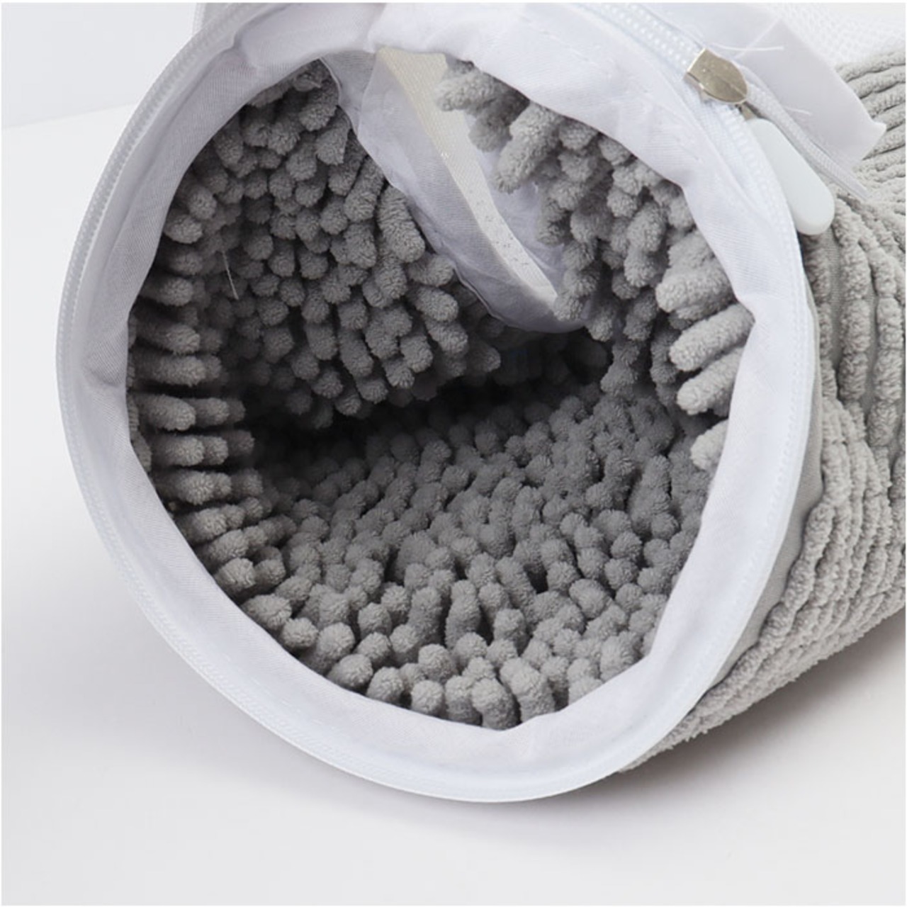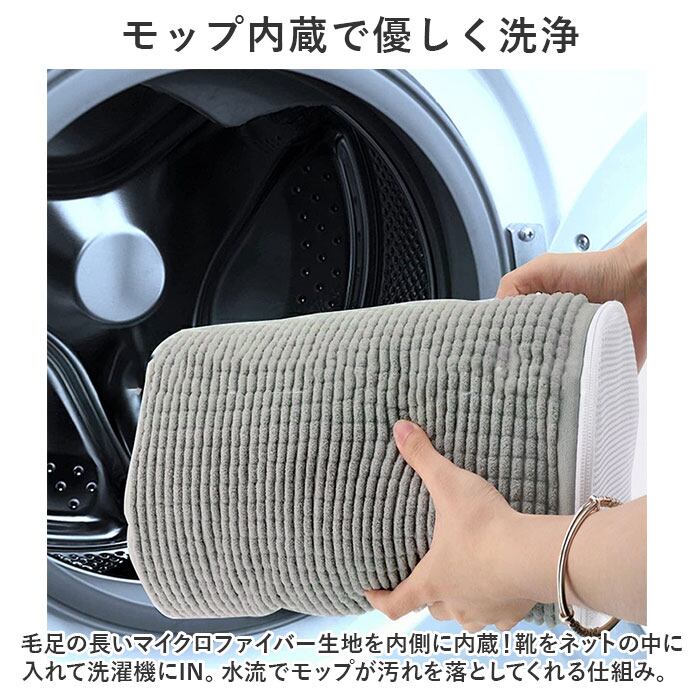 ・毛足の長いマイクロファイバー生地を内側に内蔵!靴をネットの中に入れて洗濯機にIN。水流でモップが汚れを落としてくれる仕組み。
