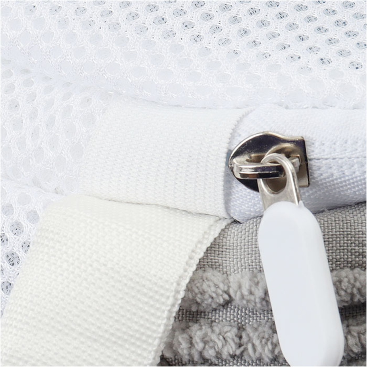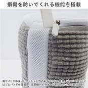 ・両サイドや中央にはクッション性のあるメッシュ素材。ジッパーヘッドにはゴムバンドを搭載し、洗濯機へのダメージを防いでくれる安心設計。