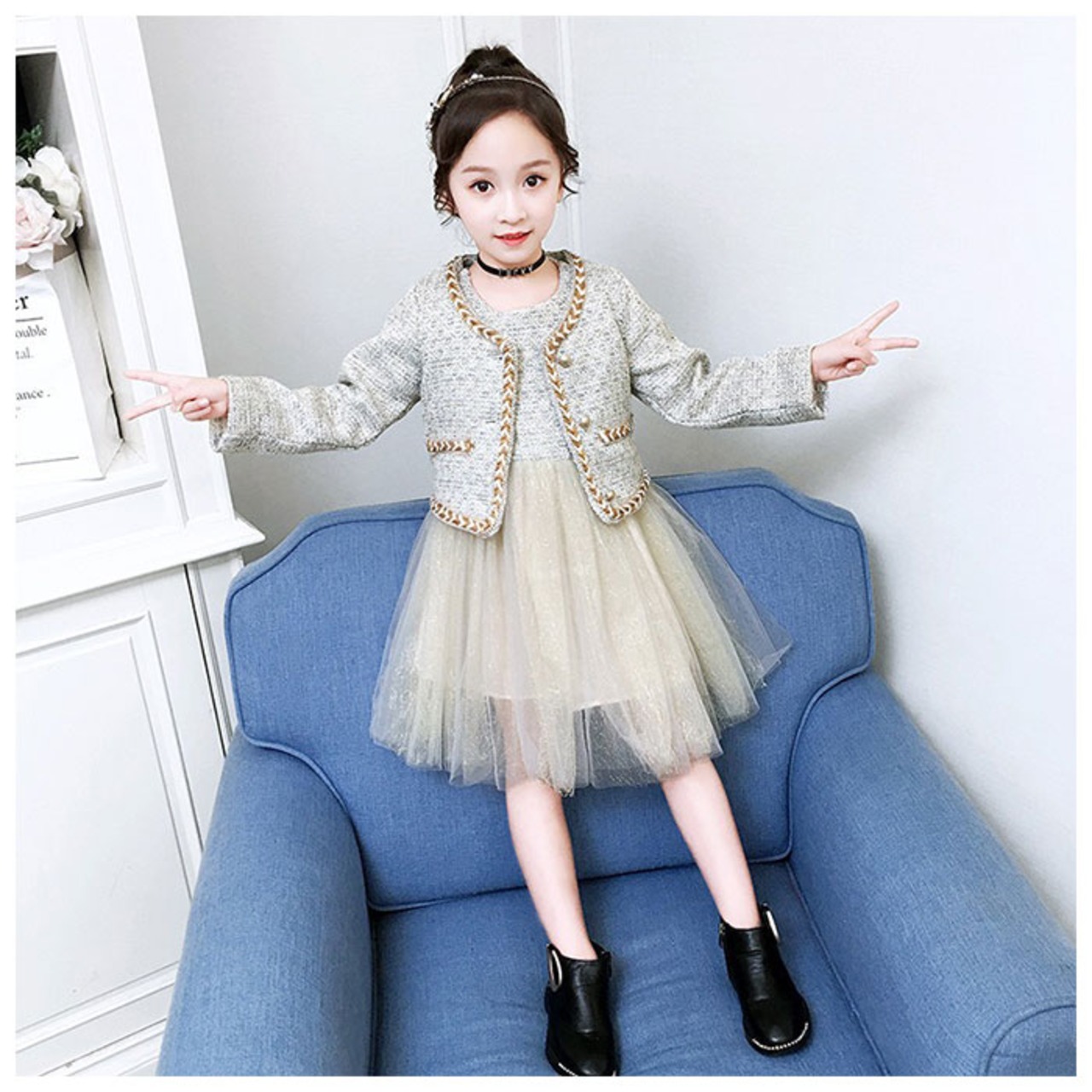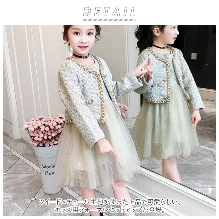 ・ツイード×チュール生地を使った上品で可愛らしい、キッズ用フォーマルセットアップが登場。