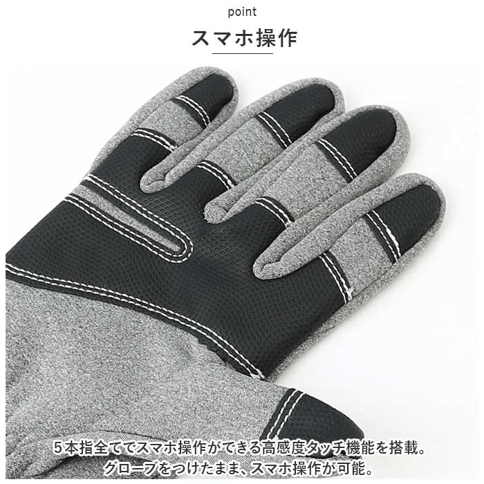 5本指全てでスマホ操作ができる高感度タッチ機能を搭載。グローブをつけたまま、スマホ操作が可能。