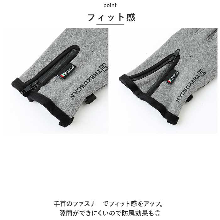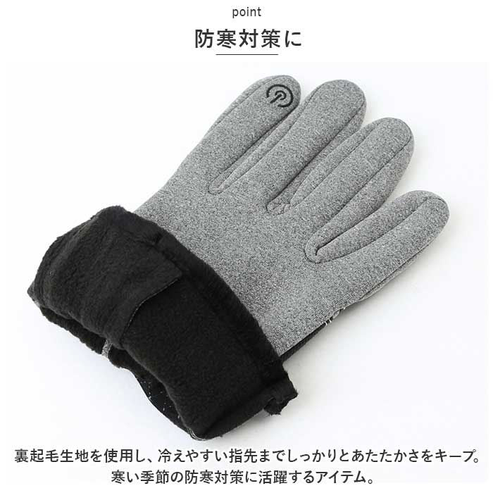 ・裏起毛生地を使用し、冷えやすい指先までしっかりとあたたかさをキープ。寒い季節の防寒対策に活躍するアイテム。
