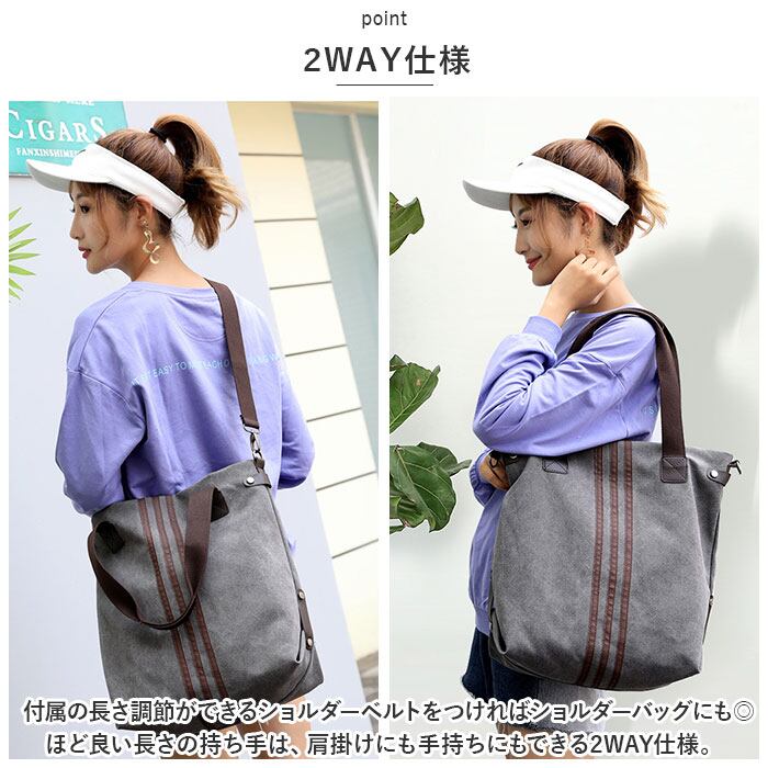 ・付属の長さ調節ができるショルダーベルトをつければショルダーバッグにも◎ほど良い長さの持ち手は、肩掛けにも手持ちにもできる2WAY仕様。