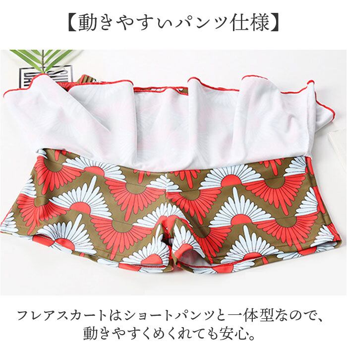 ・フレアスカートはショートパンツと一体型なので、動きやすくめくれても安心。