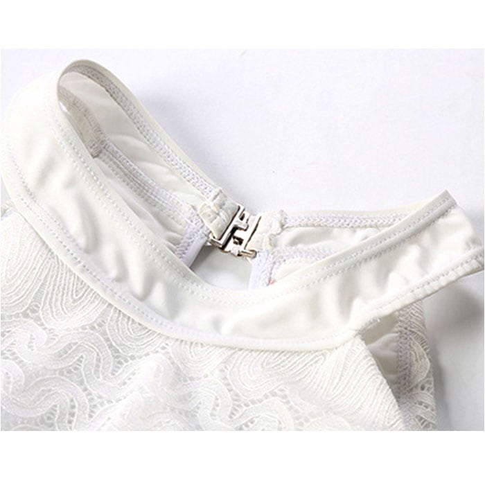 ・トップスにはレース素材を使用し、ふんわりと胸元の露出を抑えてくれる◎