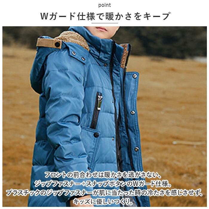 ・コートの身頃や袖には、軽くてふわふわの羽毛をたっぷりと充填。フードの内部にもしっかりと羽毛が入っているから、木枯らしが吹く日だって元気にお出かけ♪