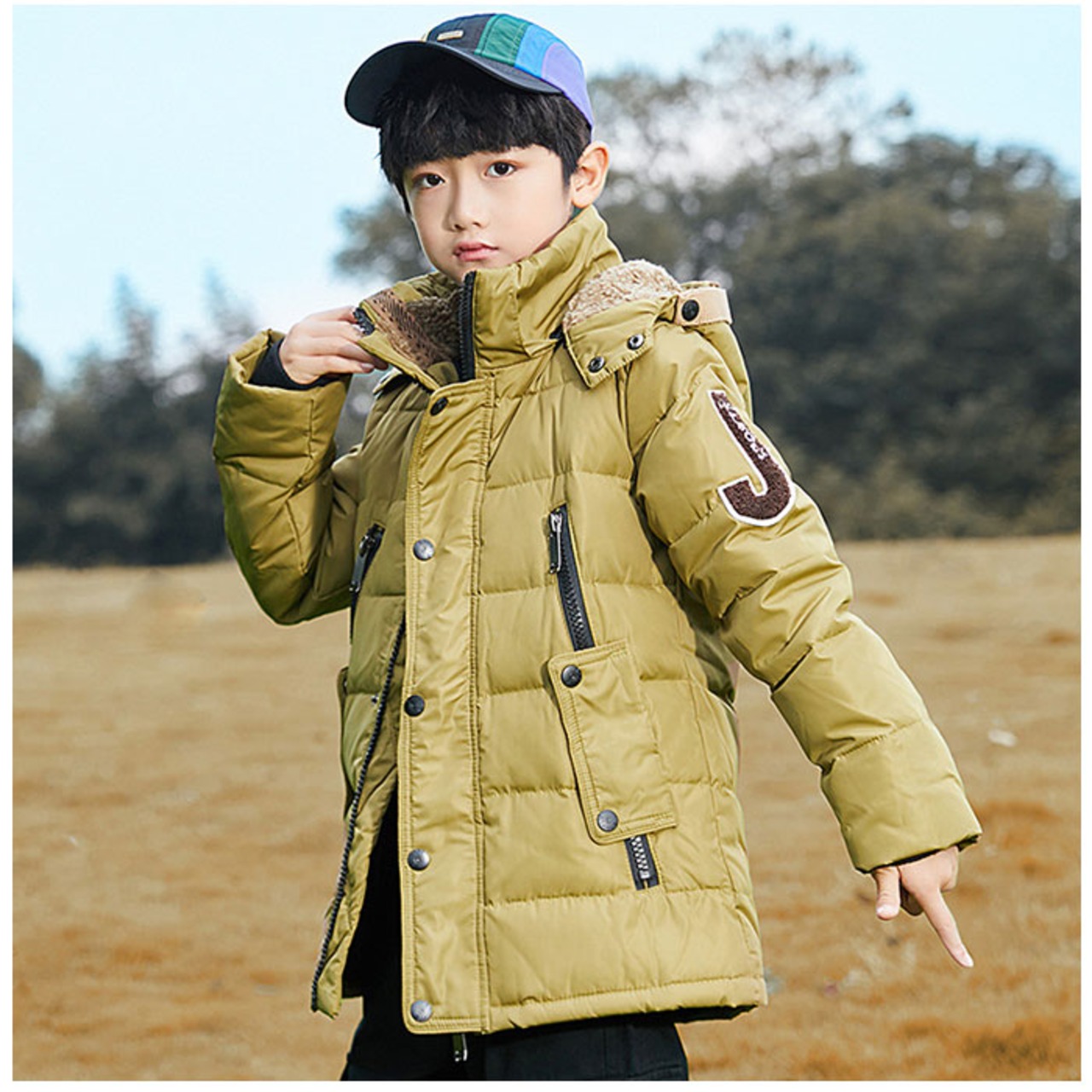 ・ふわふわダウン+もこもこボアのフードで、冬の寒さに負けない♪スタイリッシュなキッズにオススメ「キッズダウンコート」が新登場。