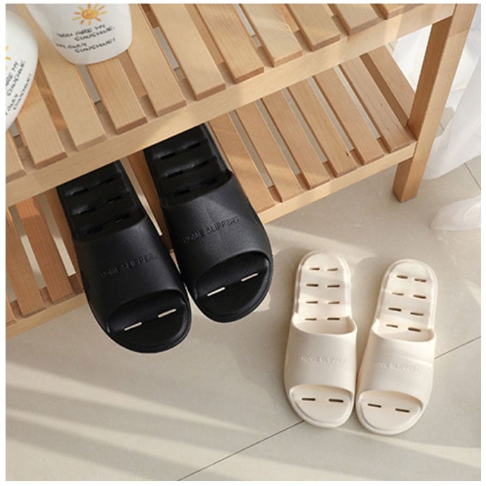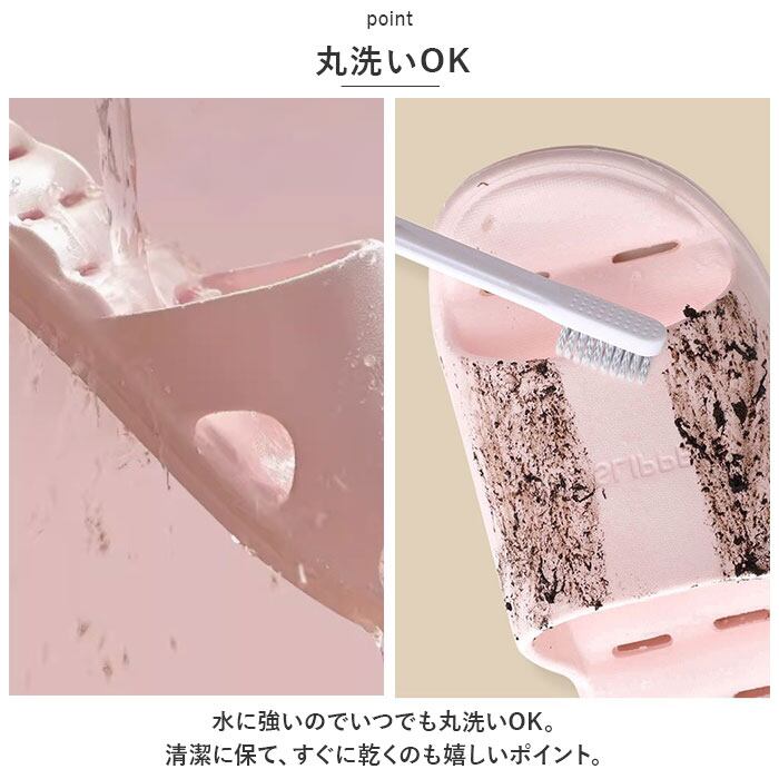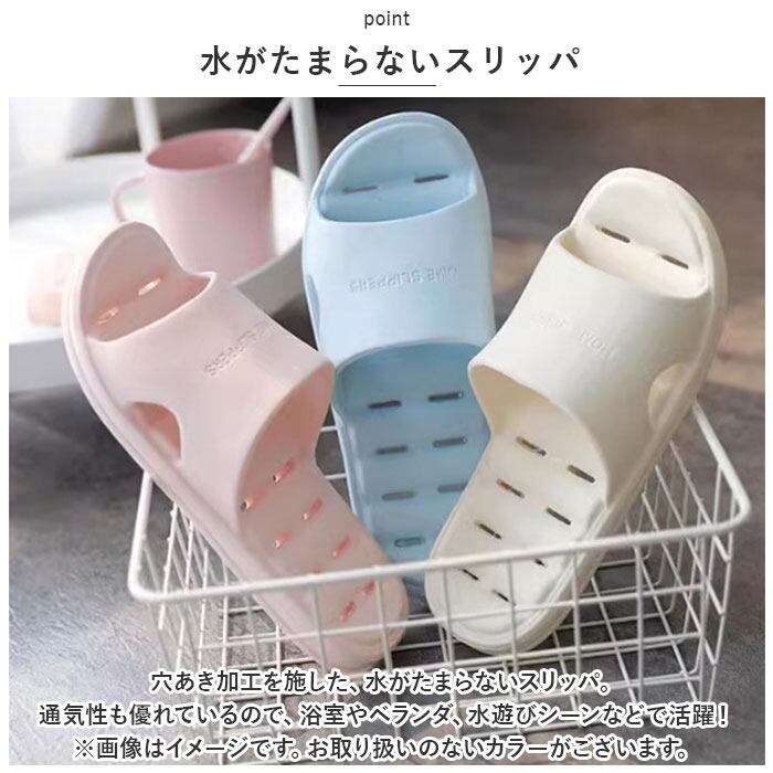 ・穴あき加工を施した、水がたまらないスリッパ。通気性も優れているので、浴室やベランダ、水遊びシーンなどで活躍!
