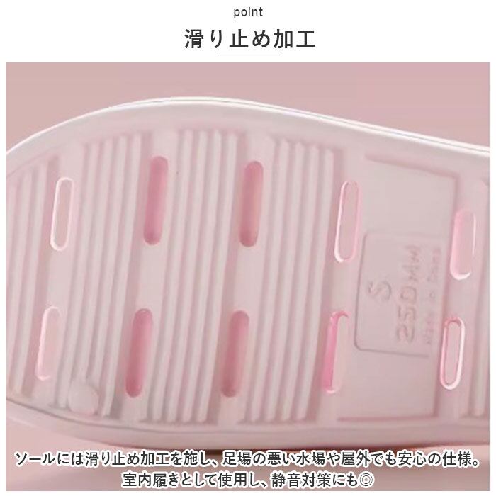 ・ソールには滑り止め加工を施し、足場の悪い水場や屋外でも安心の仕様。室内履きとして使用し、静音対策にも◎