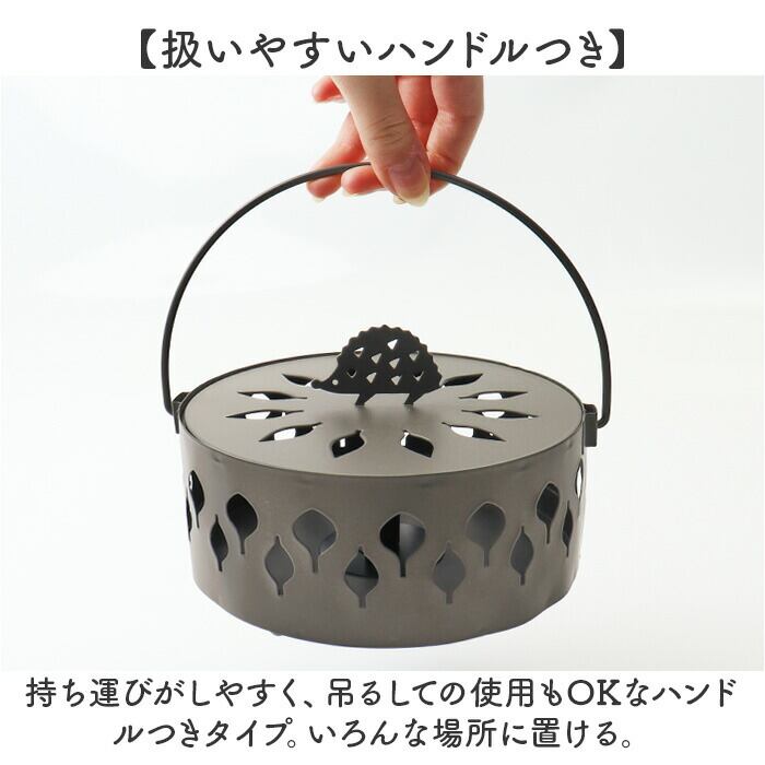 ・持ち運びがしやすく、吊るしての使用もOKなハンドルつきタイプ。いろんな場所に置ける。