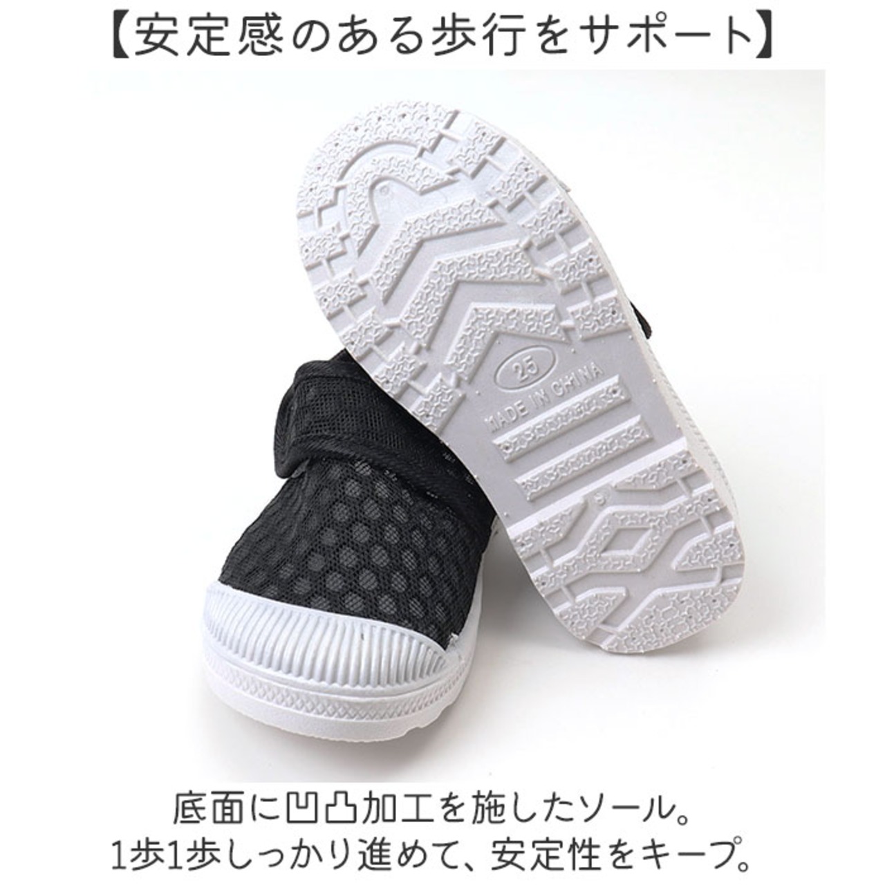 ・底面に凹凸加工を施したソール。1歩1歩しっかり進めて、安定性をキープ。