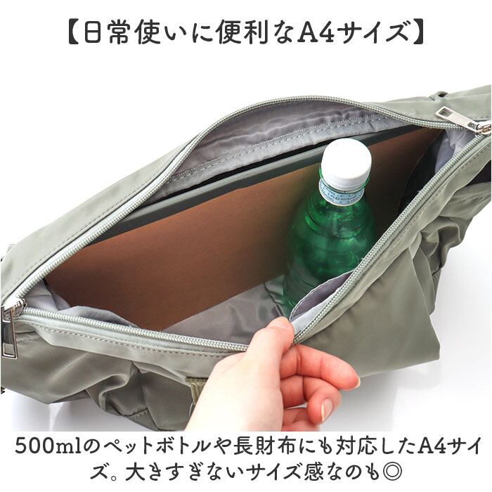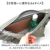 ・500mlのペットボトルや長財布にも対応したA4サイズ。大きすぎないサイズ感なのも◎