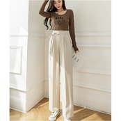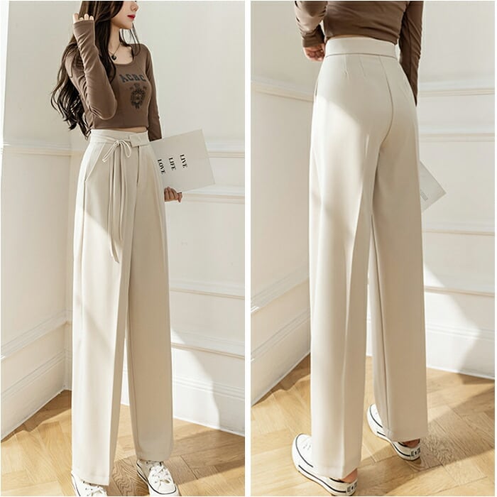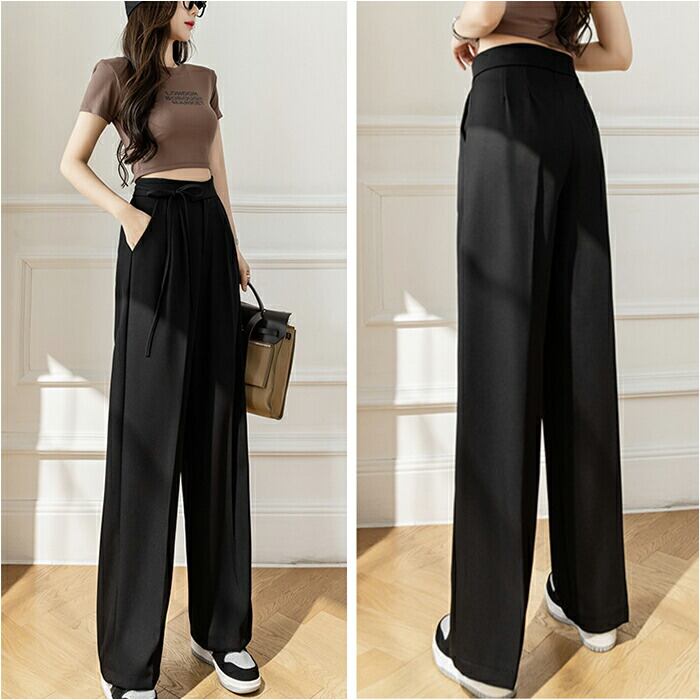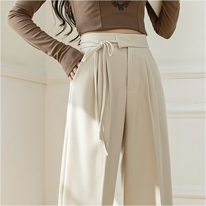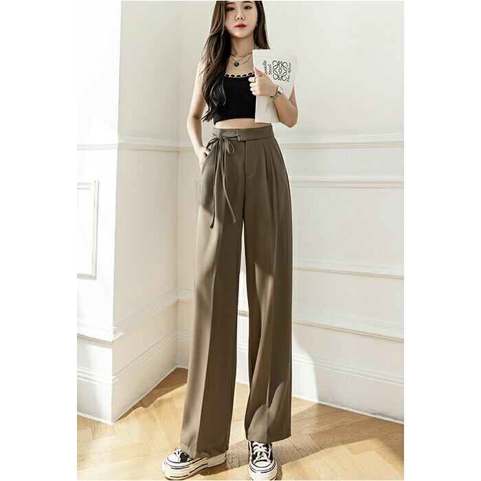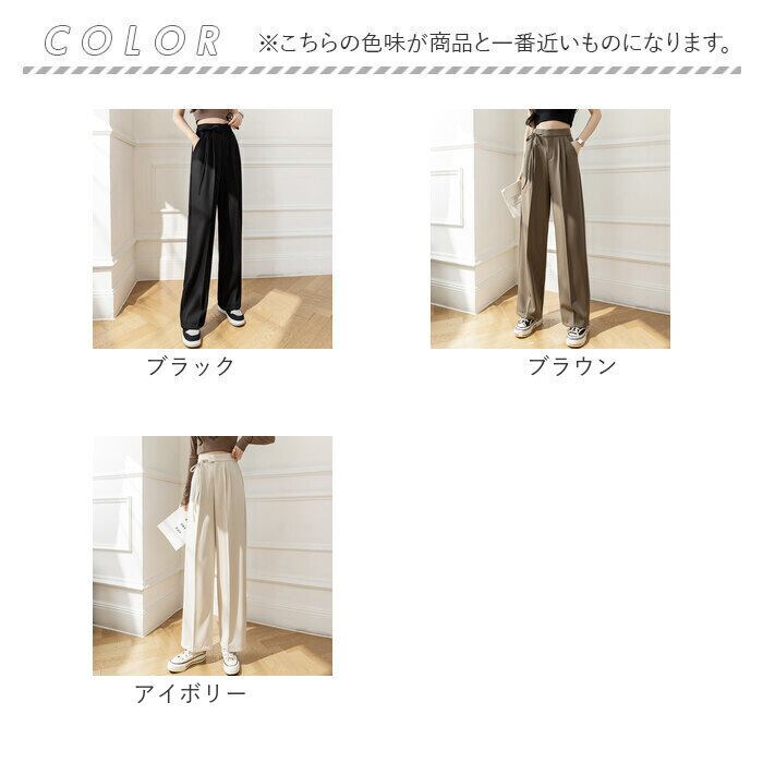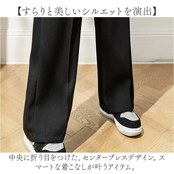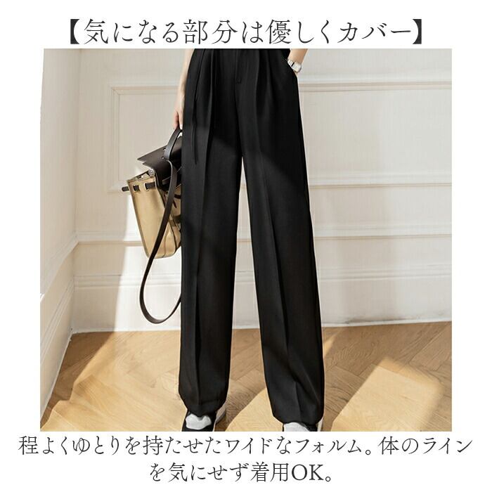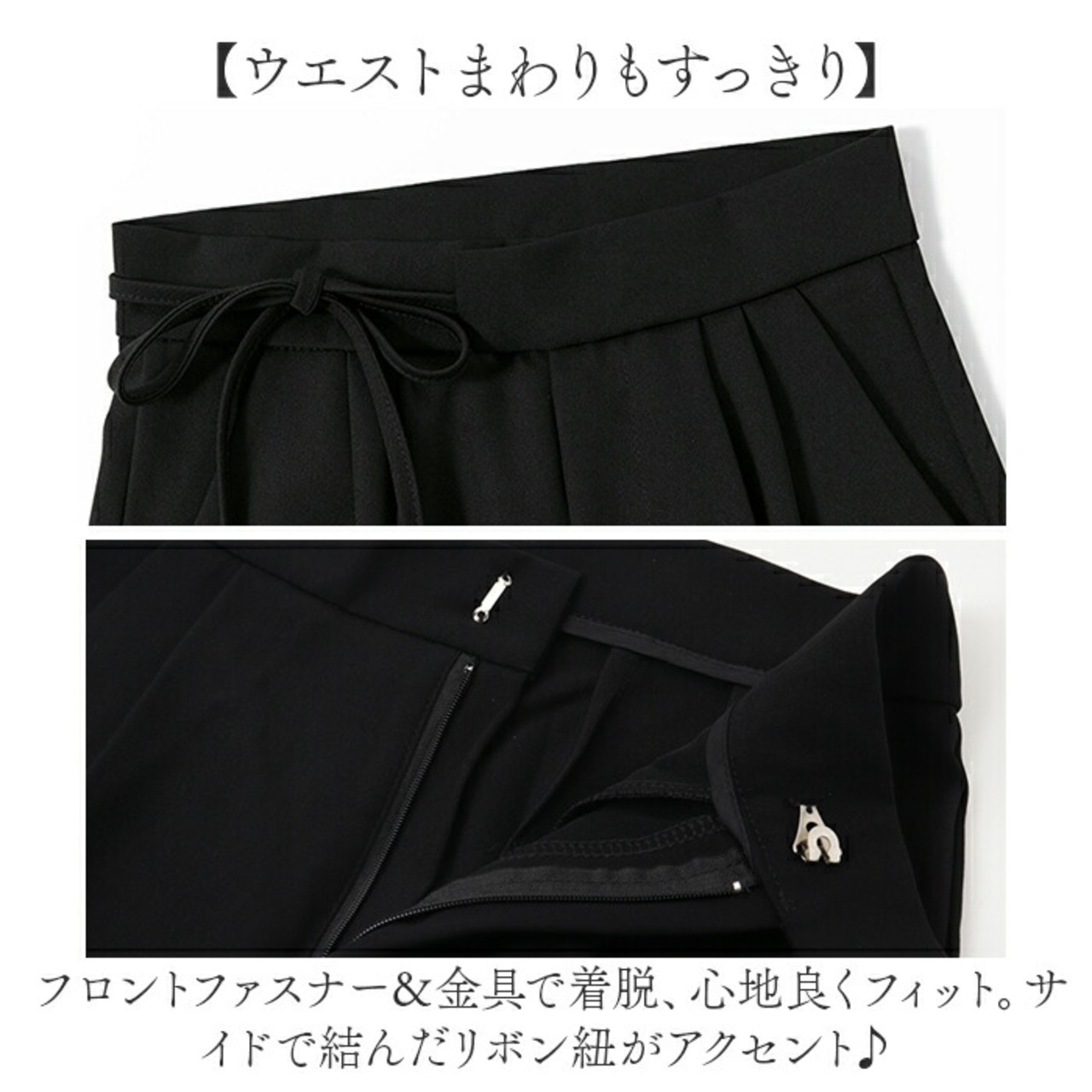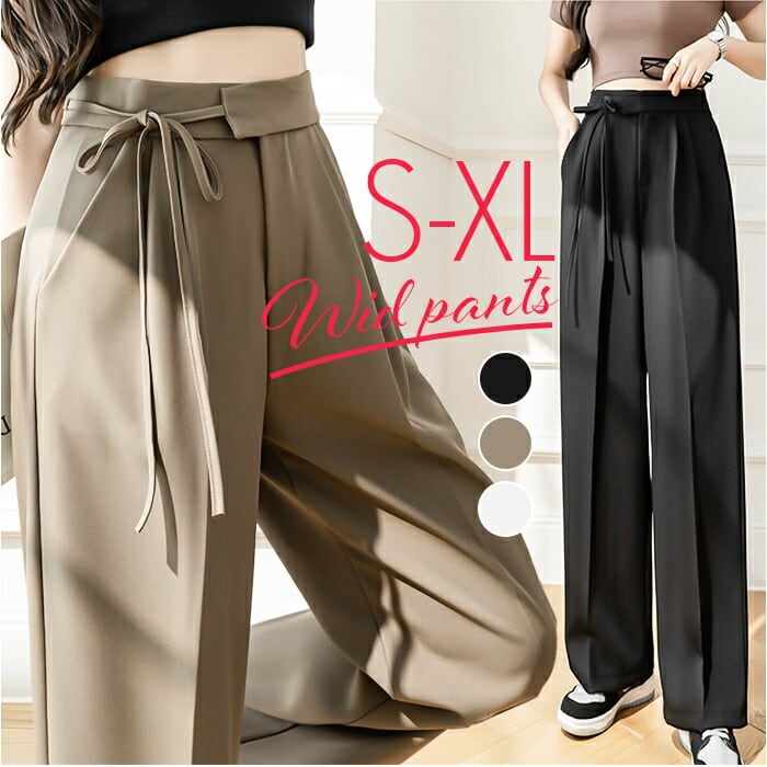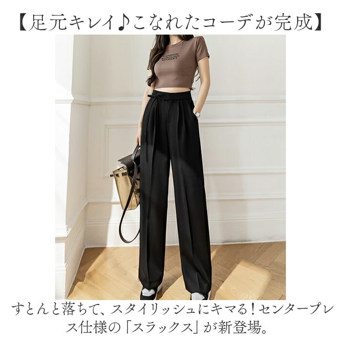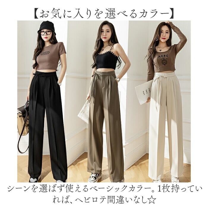 スラックス ワイドパンツ レディース 通販 タックパンツ ストレートパンツ タックワイドパンツ パンツ ズボン ロングパンツ 長ズボン ハイウエスト サイドリボン リボン きれいめ センタープレス 無地 キレイめ カジュアル 通勤 通学 おしゃれ オシャレ