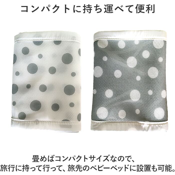 ・畳めばコンパクトサイズなので、旅行に持って行って、旅先のベビーベッドに設置も可能。