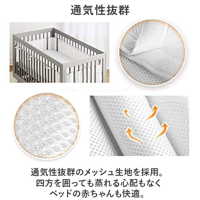 ・通気性抜群のメッシュ生地を採用。四方を囲っても蒸れる心配もなくベッドの赤ちゃんも快適。