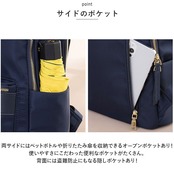 ・両サイドにはペットボトルや折りたたみ傘を収納できるオープンポケットあり!使いやすさにこだわった便利なポケットがたくさん。