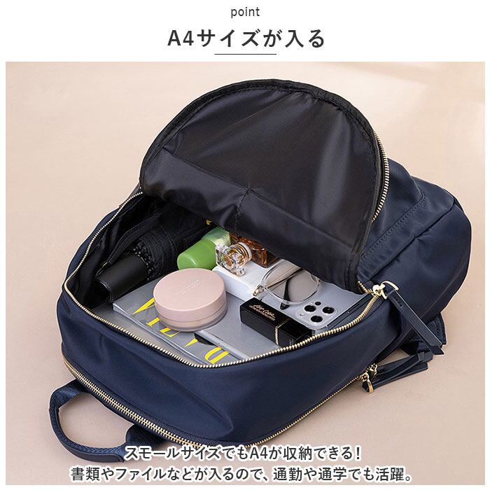 ・スモールサイズでもA4が収納できる!書類やファイルなどが入るので、通勤や通学でも活躍。