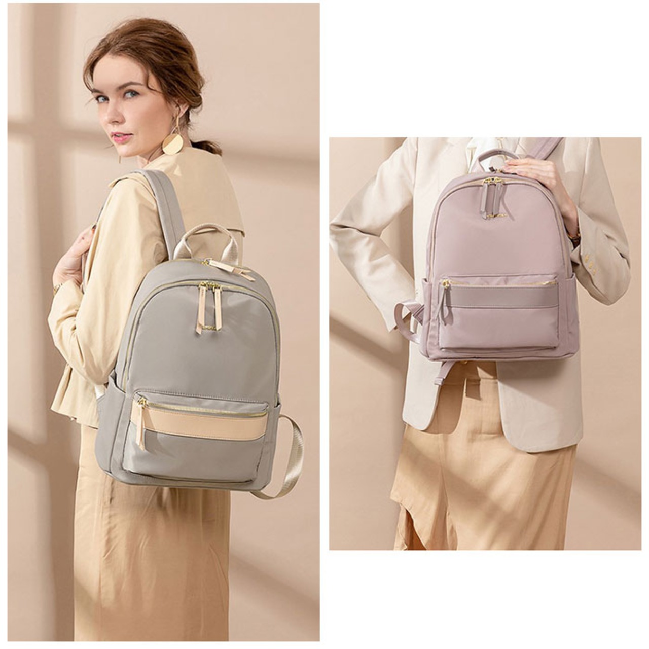 ・大人っぽいカラー展開で、ビジネスシーンやおでかけにぴったり!金具やフロント部分のロゴは光沢があり上品な印象◎