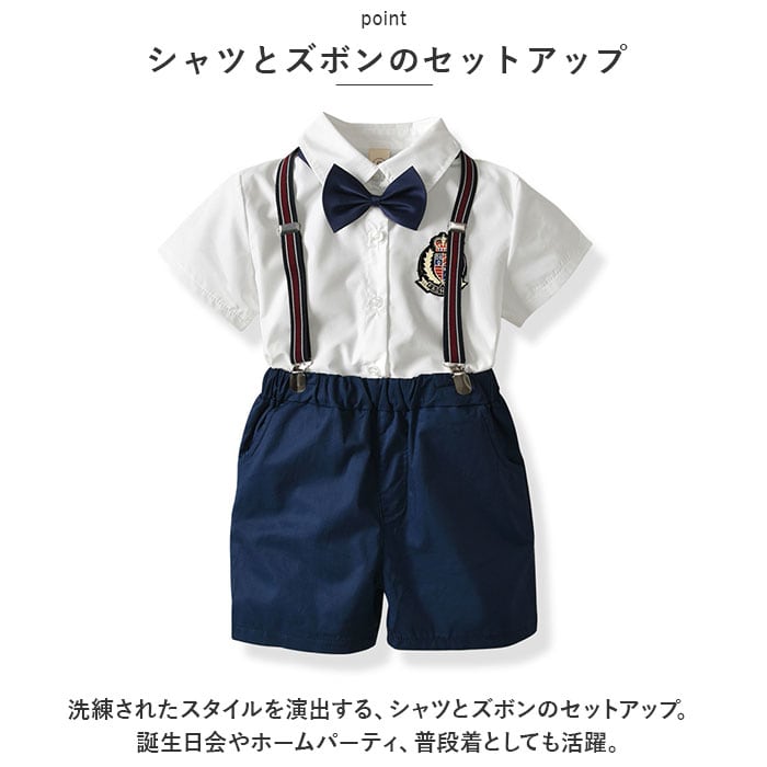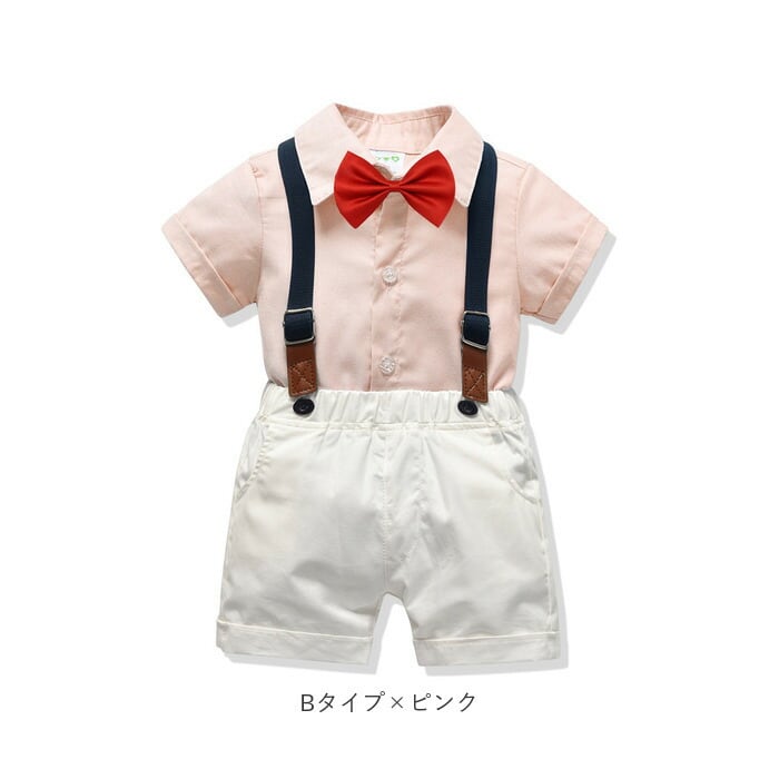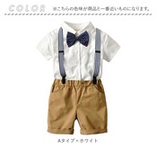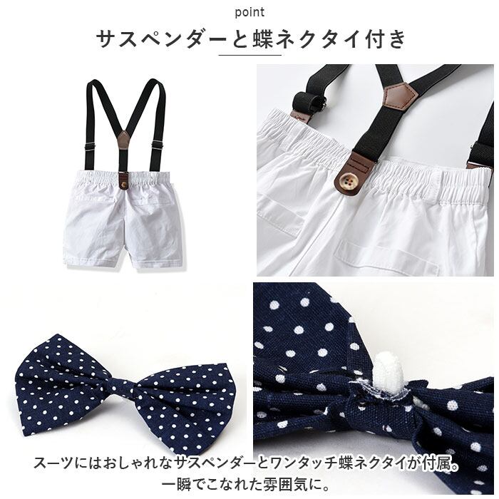 ・スーツにはおしゃれなサスペンダーとワンタッチ蝶ネクタイが付属。一瞬でこなれた雰囲気に。