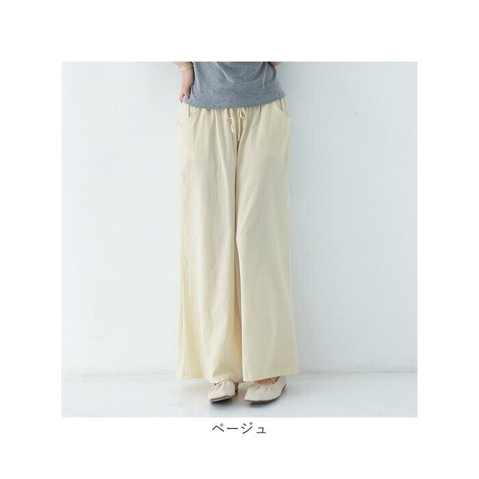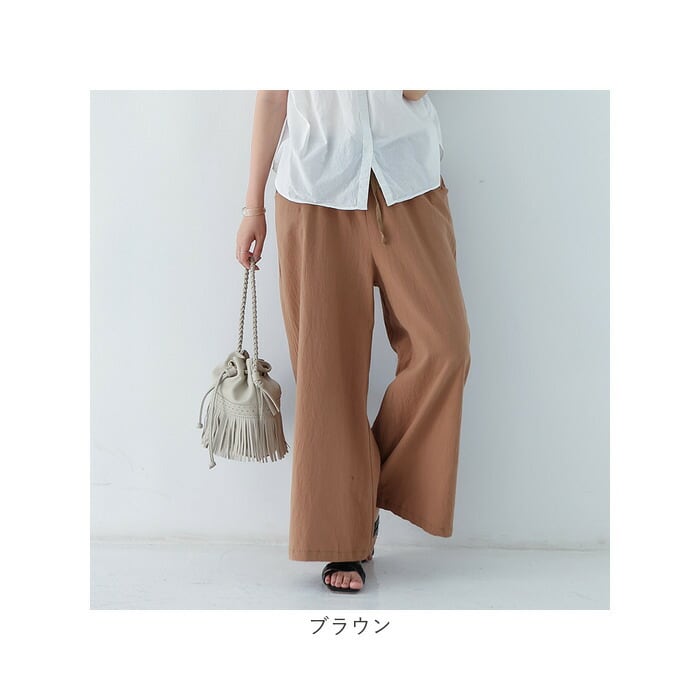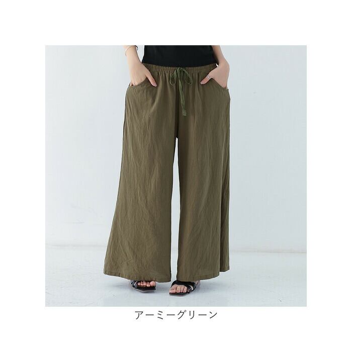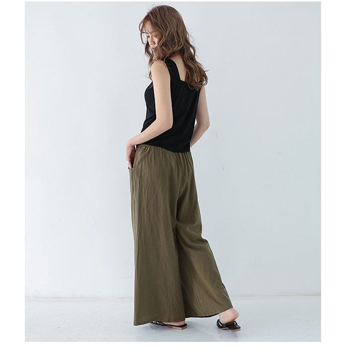 ・締め付け感のないウエストゴム仕様で動きやすく、座りっぱなしでもラクチン!股上が深く、安定した履き心地をプラス。外側の紐でサイズ調節もOK。