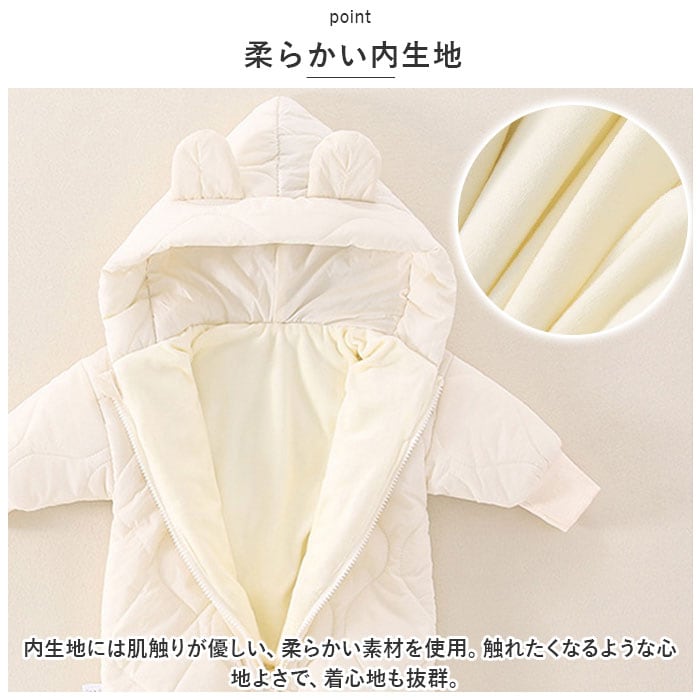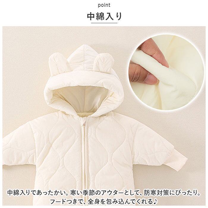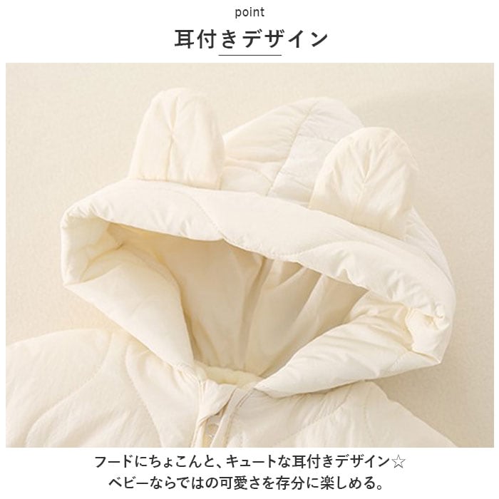 ・フードにちょこんと、キュートな耳付きデザイン☆ベビーならではの可愛さを存分に楽しめる。