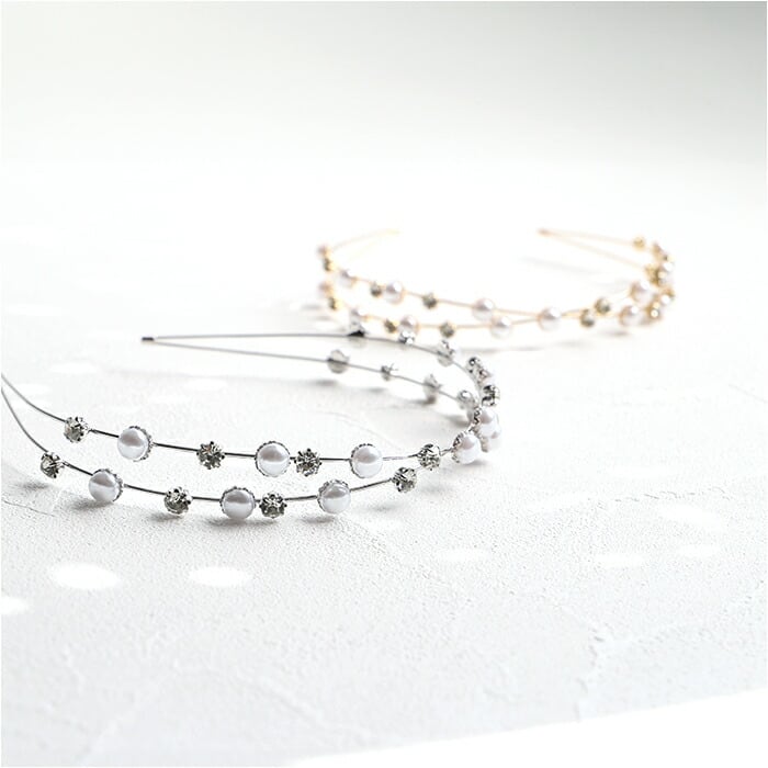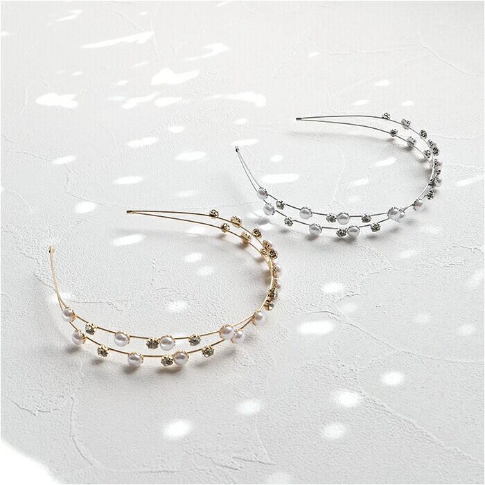 ・イミテーションパールやキラッと輝くビジューを組み合わせた、2連カチューシャ。上品な印象♪
