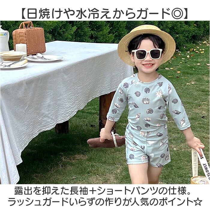 ・露出を抑えた長袖+ショートパンツの仕様。ラッシュガードいらずの作りが人気のポイント☆