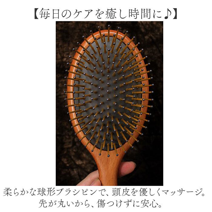 ・柔らかな球形ブラシピンで、頭皮を優しくマッサージ。先が丸いから、傷つけずに安心。