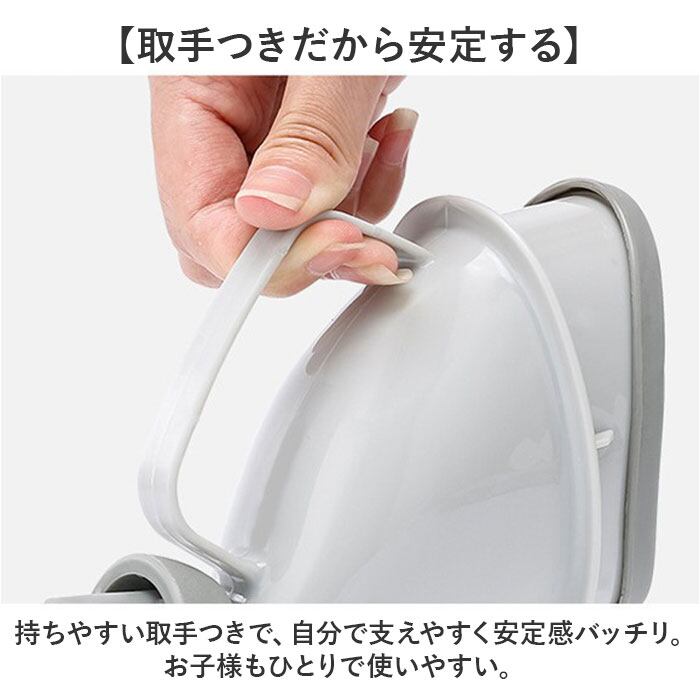 ・持ちやすい取手つきで、自分で支えやすく安定感バッチリ。お子様もひとりで使いやすい。