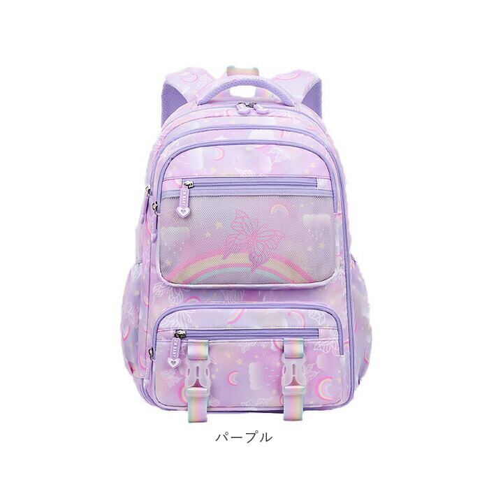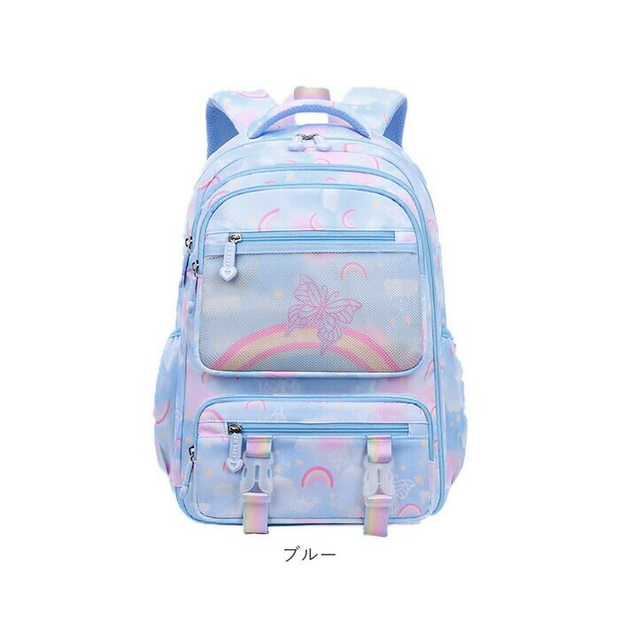 ・淡いグラデーションカラーにプリント柄をプラス☆刺繍デザインや、ロゴ入りのファスナー引き手もアクセントに。下部のバックルベルトにはタオルなどを掛けてもOK。