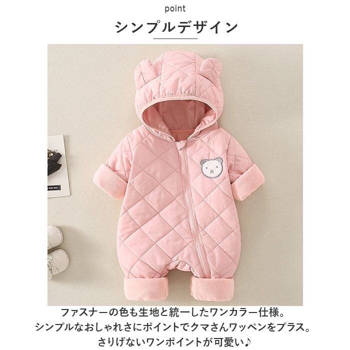・クマさんがほっこり可愛い♪裏起毛仕様であったか防寒「ベビージャンプスーツ」が登場。