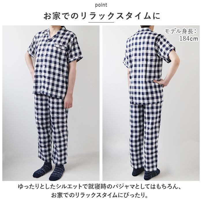 ・ゆったりとしたシルエットで就寝時のパジャマとしてはもちろん、お家でのリラックスタイムにぴったり。