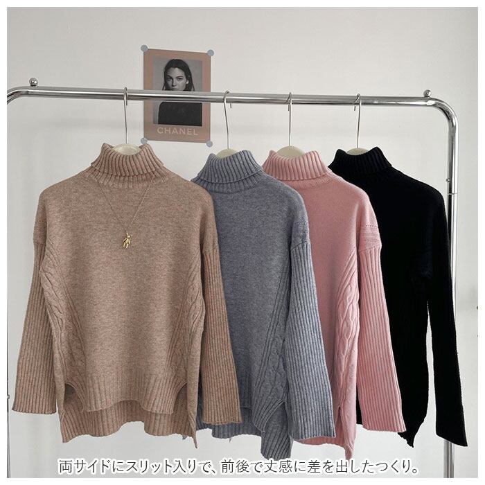 セットアップ ニット レディース 通販 上下セット 秋 冬 セーター ワイドパンツ ニットセーター リブニット サイドスリット 厚手 タートルネック プルオーバー カジュアル 長袖 ゆったり 無地 通勤